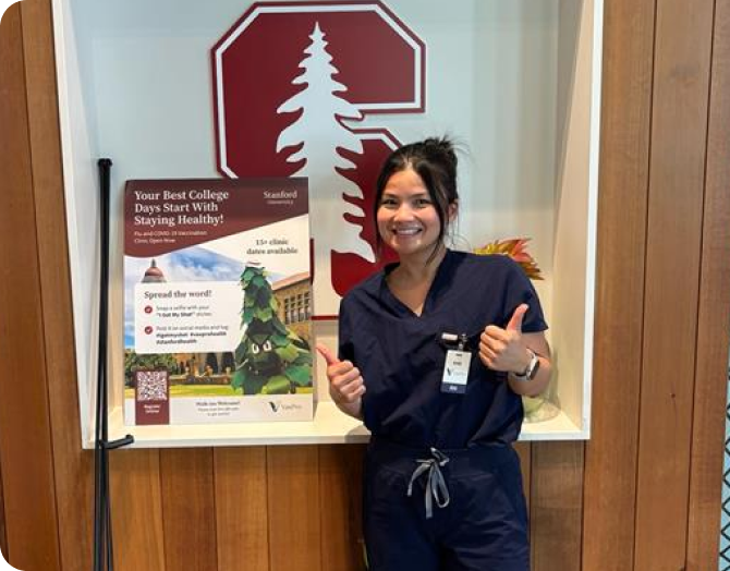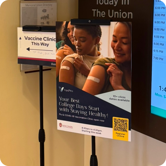 On-site vaccination clinics for colleges and universities. We handle staffing, logistics, and records.